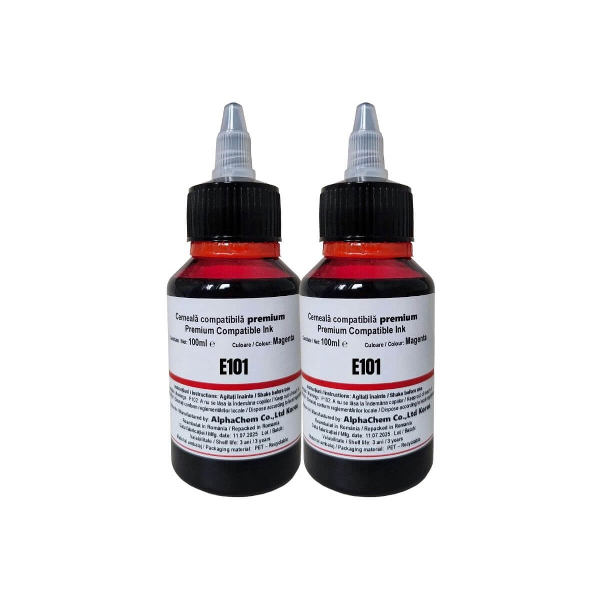 Recomandăm Setul de Flacoane Cerneală compatibil Epson 101 Magenta 2x100 ml cu picurător utilizatorilor care doresc culori intense, reîncărcare curată și imprimare fiabilă, la un preț avantajos.