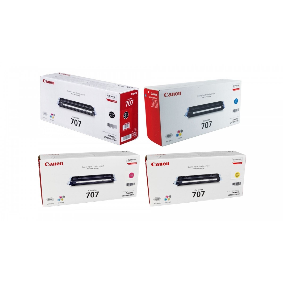 Questions and Answers (FAQ) Pachet Cartuse Toner Original Canon 1x CRG-707B Negru, 1x CRG-707C Cyan, 1x CRG-707M Magenta, 1x CRG-707Y Galben, 8500 pagini si stick USB