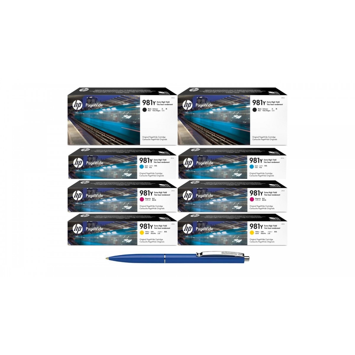 Pachet MAG4U Cartuse Cerneala Originale 2X L0R16A (981Y) Black, 2X L0R13A (981Y) Cyan, 2X L0R14A (981Y) Magenta, L0R15A (981Y) Yellow si Pix Schneider