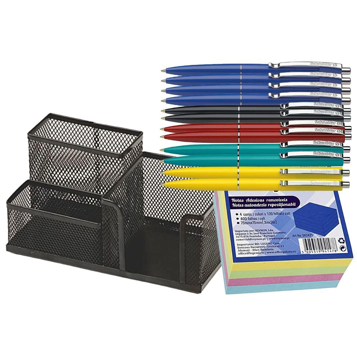 Adaugă un plus de eficiență și stil biroului tău cu acest Set Office Premium, perfect pentru utilizarea zilnică la birou, acasă sau în școală. Conține pixuri germane de calitate superioară, un suport metalic elegant și un cub colorat pentru notițe rapide.