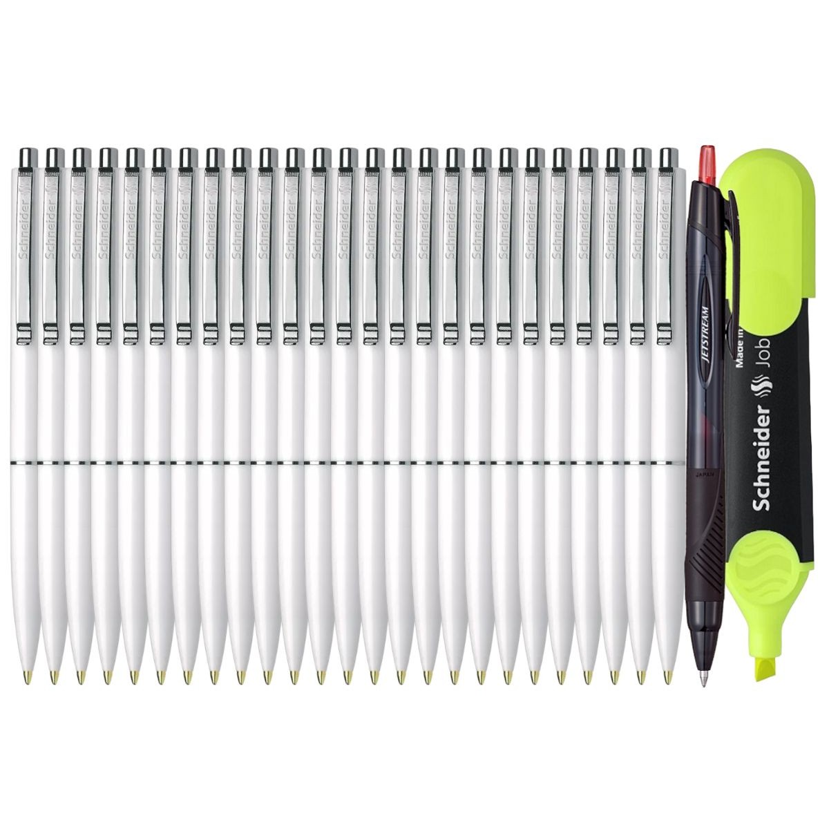Un set complet și elegant pentru birou, școală sau activități creative. Conține 25 de pixuri Schneider K15 cu corp alb, un pix Jetstream original Uni-Ball și un marker text Schneider – tot ce ai nevoie pentru o experiență de scris premium.
