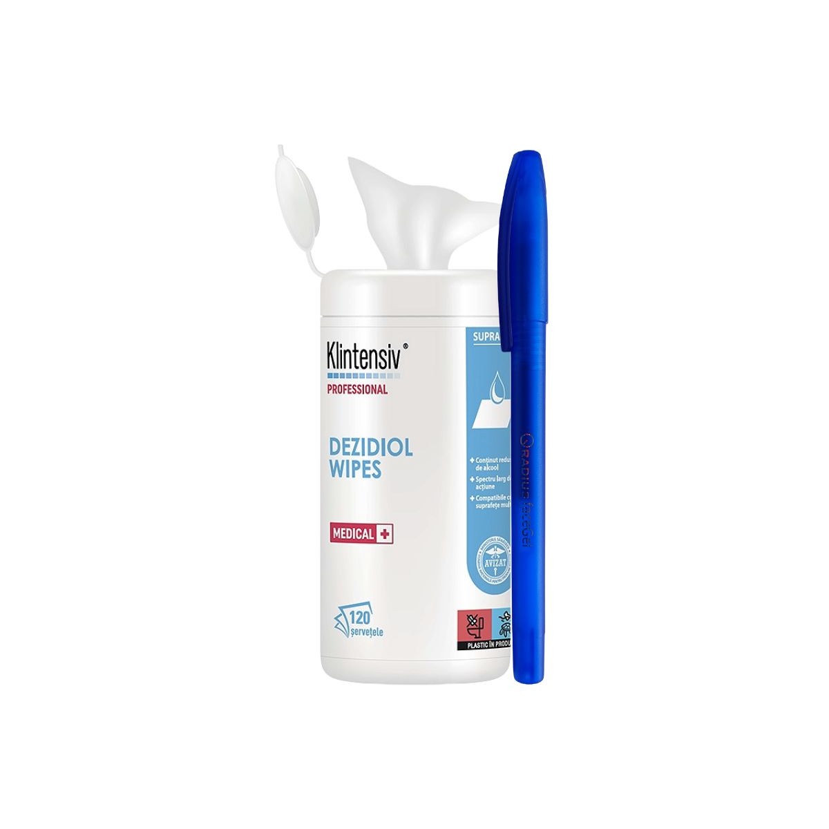 Șervețele Dezinfectante pentru Suprafețe – DEZIDIOL™ WIPES TP2, 120 buc. + BONUS Pix Radius – Curățare Profesională și Protecție Antimicrobiană Extinsă