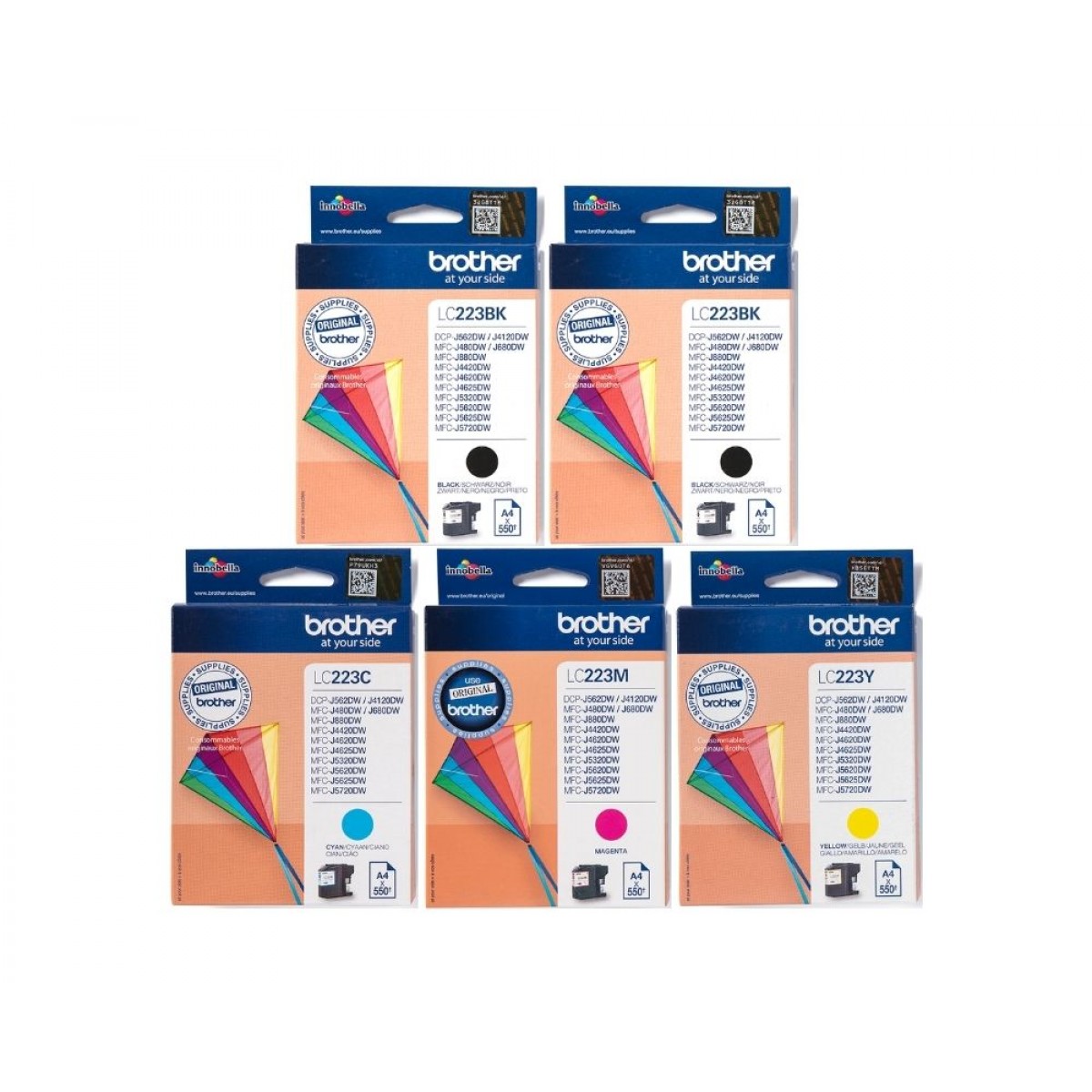 Descriere Set Cartus cerneala Brother Original 2xLC223BK Negru LC223C Cyan LC223M Magenta LC223Y Galben 2750 pagini si pix Schneider