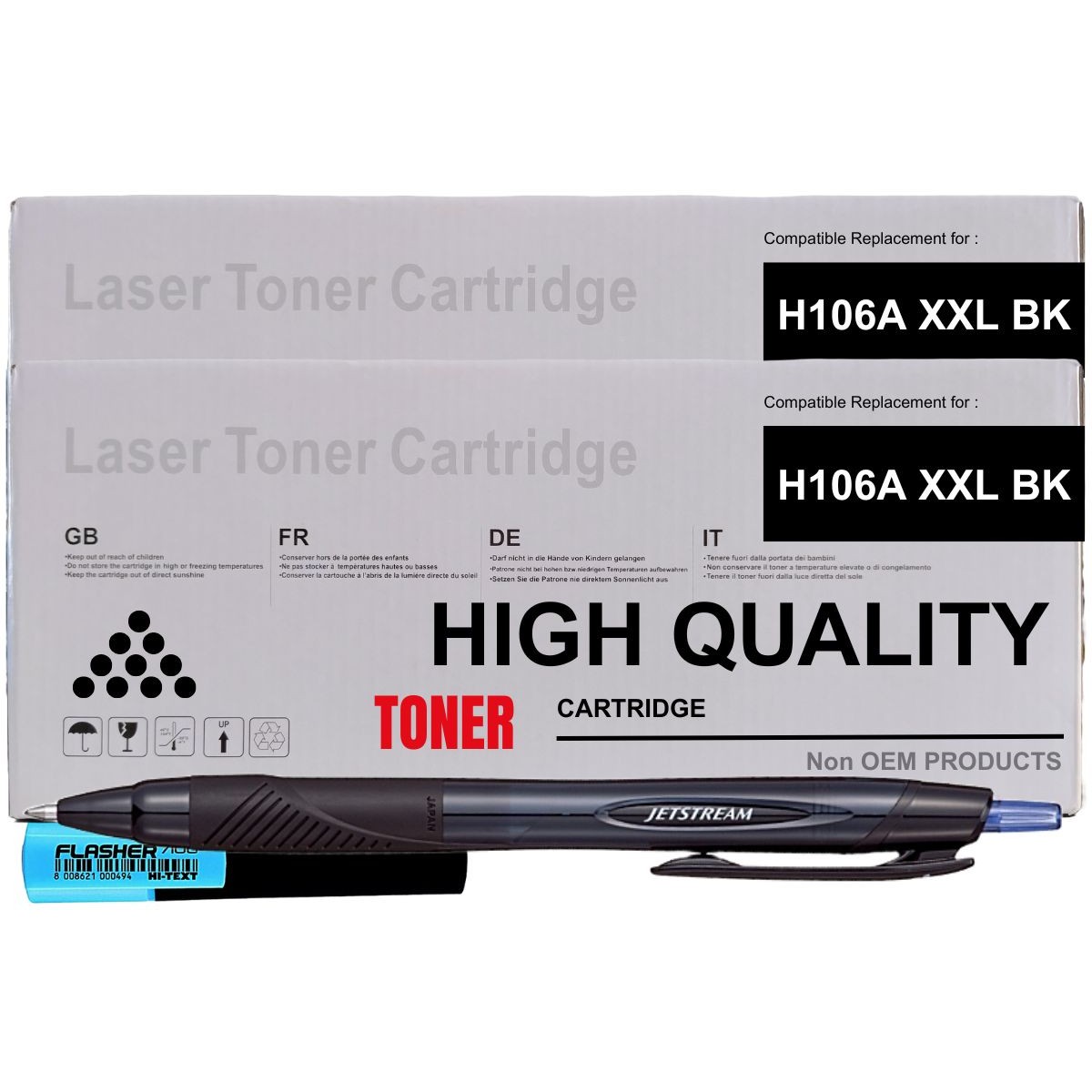 Set Cartuș Toner Compatibil HP106AXXL, 2xW1106AXXL Negru 2x5000 pagini + Pix Jestream și Textmarker Flasher