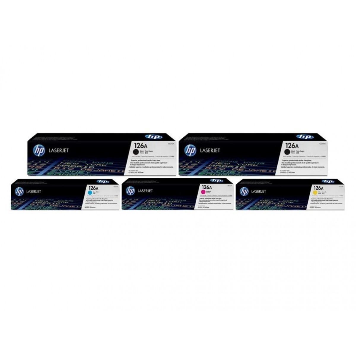 Questions and Answers (FAQ) Set Cartuse Toner Original HP (126A) 2x CE310A Negru, 1x CE311A Cyan, 1x CE313A Magenta, 1x CE312A Galben, 5400 pagini si stick USB
